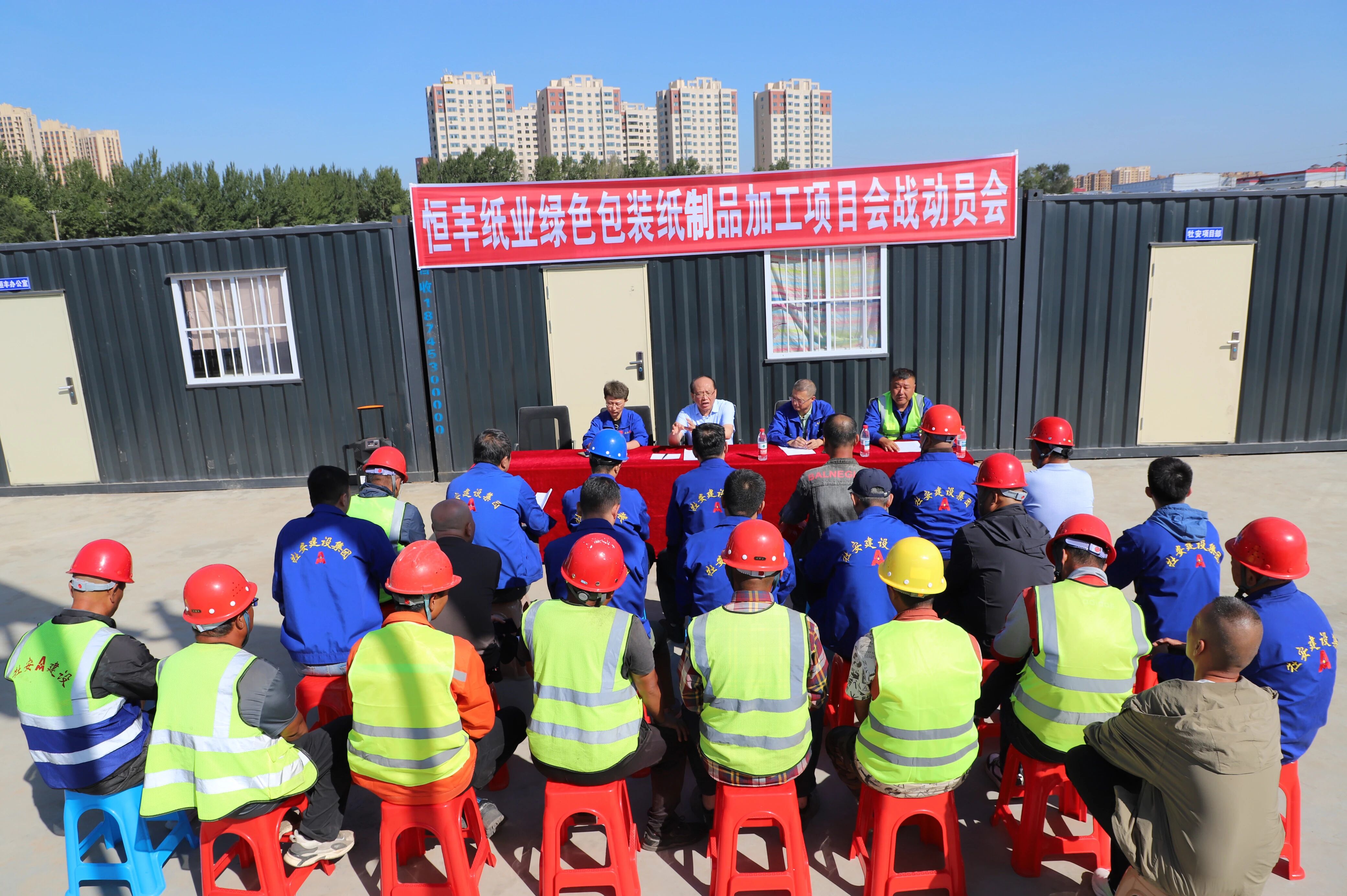 2025 年 9 月 11 日,公司在恒豐項(xiàng)目部召開恒豐紙業(yè)綠色包裝紙制品加工項(xiàng)目會戰(zhàn)動員會。本次會議旨在凝聚全員力量、明確工作方向,為項(xiàng)目會戰(zhàn)吹響沖鋒號角,會議由公司副總經(jīng)理王天茂主持。